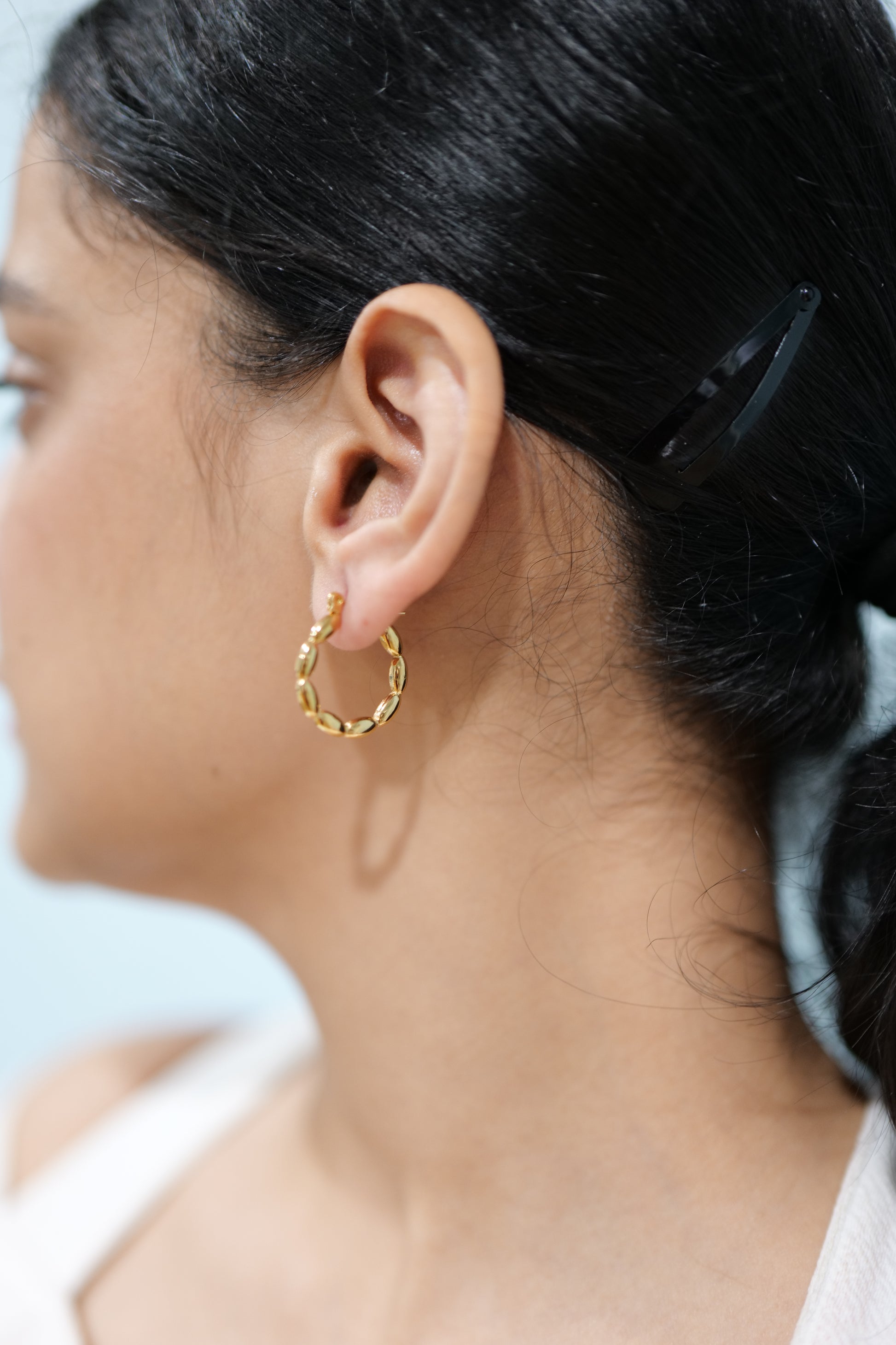 Introducing our Scarlet Swirl Hoops. These gold hoops boast a unique, swirling design that adds a touch of elegance to any outfit. Made with high-quality materials, they are both durable and stylish. Elevate your look with these beautiful swirl hoops.