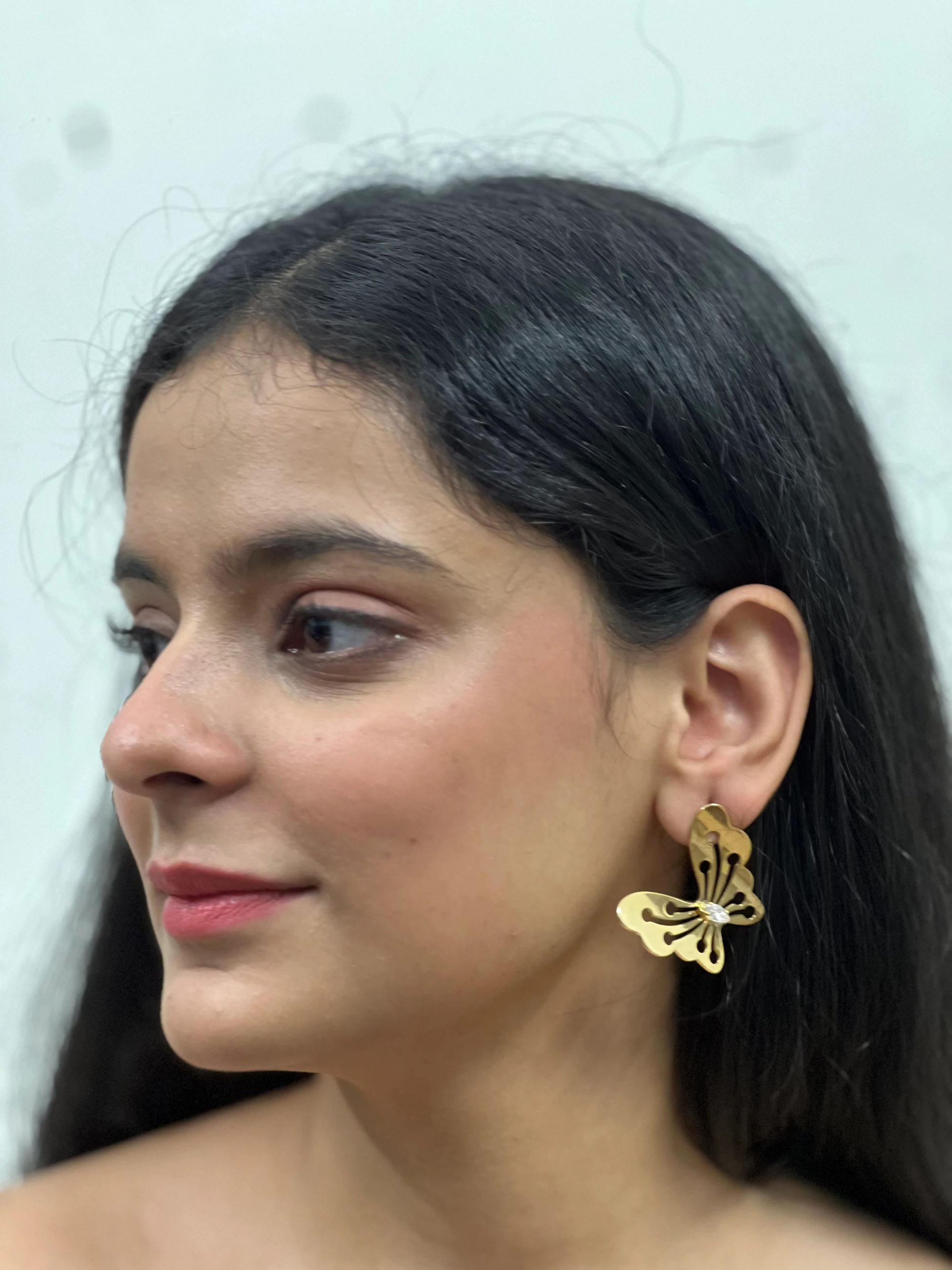 Experience elegance and charm with our Butterfly Allure Earrings. Made with high-quality gold, these earrings showcase a beautiful butterfly design that will add a touch of enchantment to any outfit. Elevate your style with these timeless and sophisticated earrings.