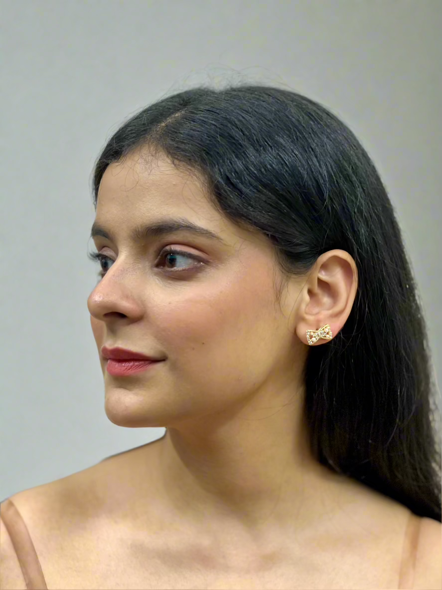 Add a touch of whimsy with these adorable bow-shaped earrings, perfect for a feminine and playful look. A charming accessory for any occasion.