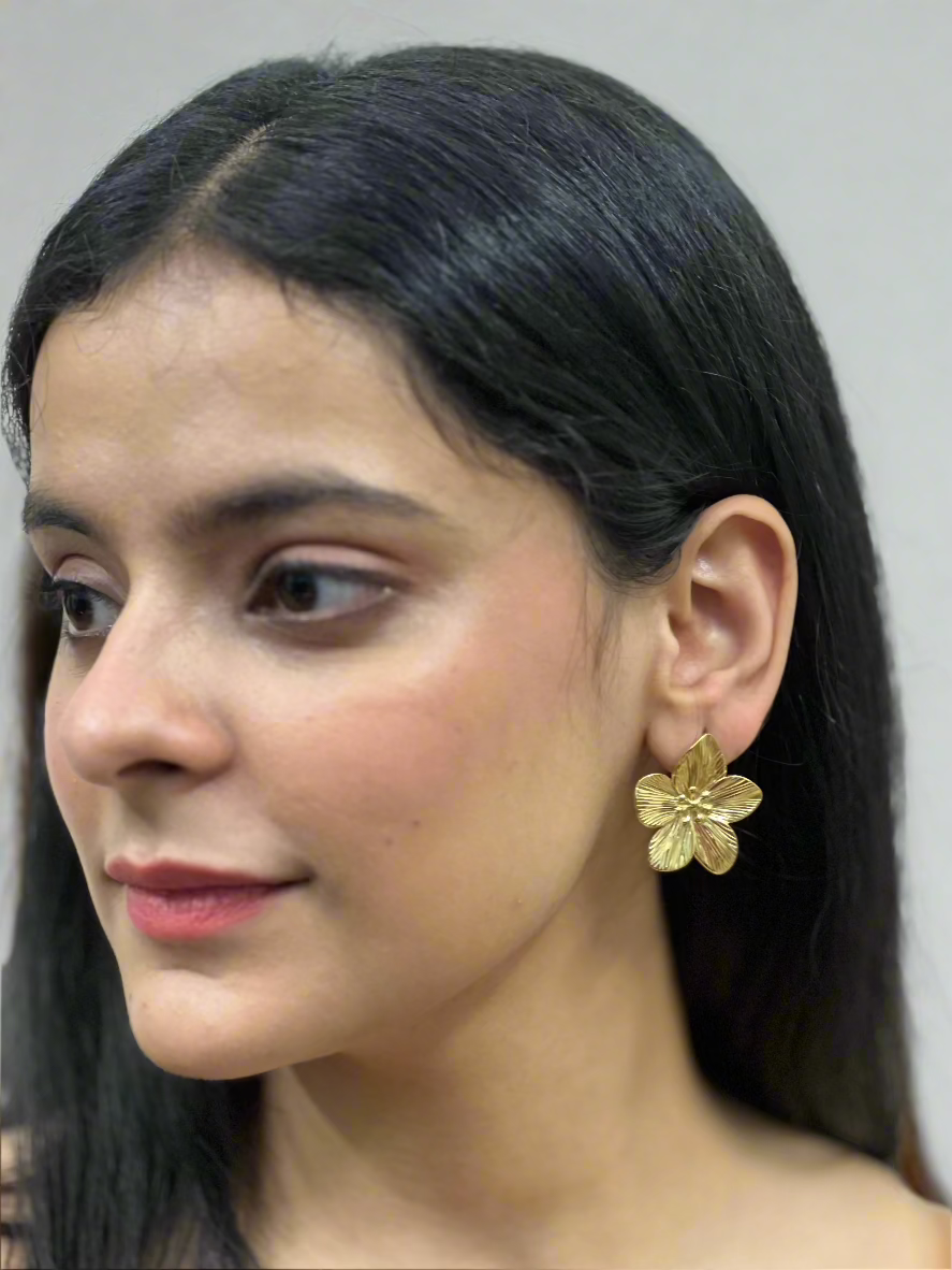 Add a delicate touch to your ensemble with our Floral Embrace Earrings. These flower-shaped earrings exude femininity and elevate your overall look. With a floral design, these earrings are the perfect accessory for any occasion.