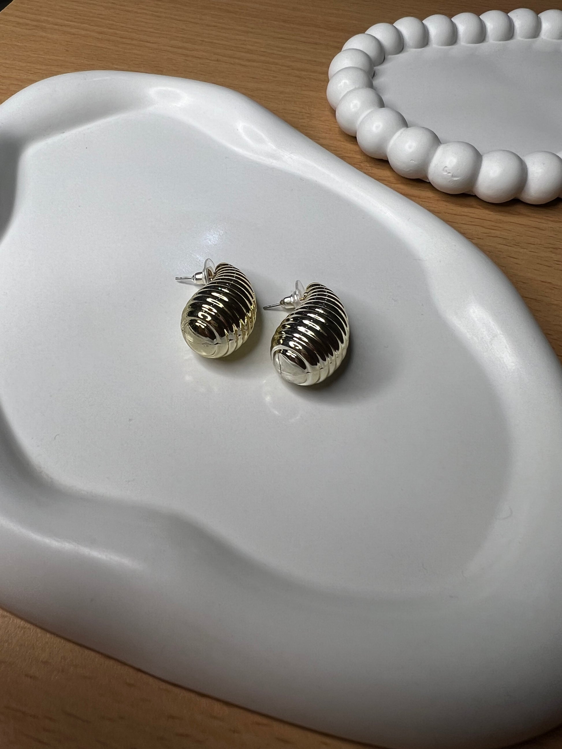 Exude elegance and sophistication with our Rippled teardrop earrings. The teardrop pattern adds a touch of unique charm, while the gold plating exudes luxury. Elevate any outfit and make a statement with these stunning earrings.