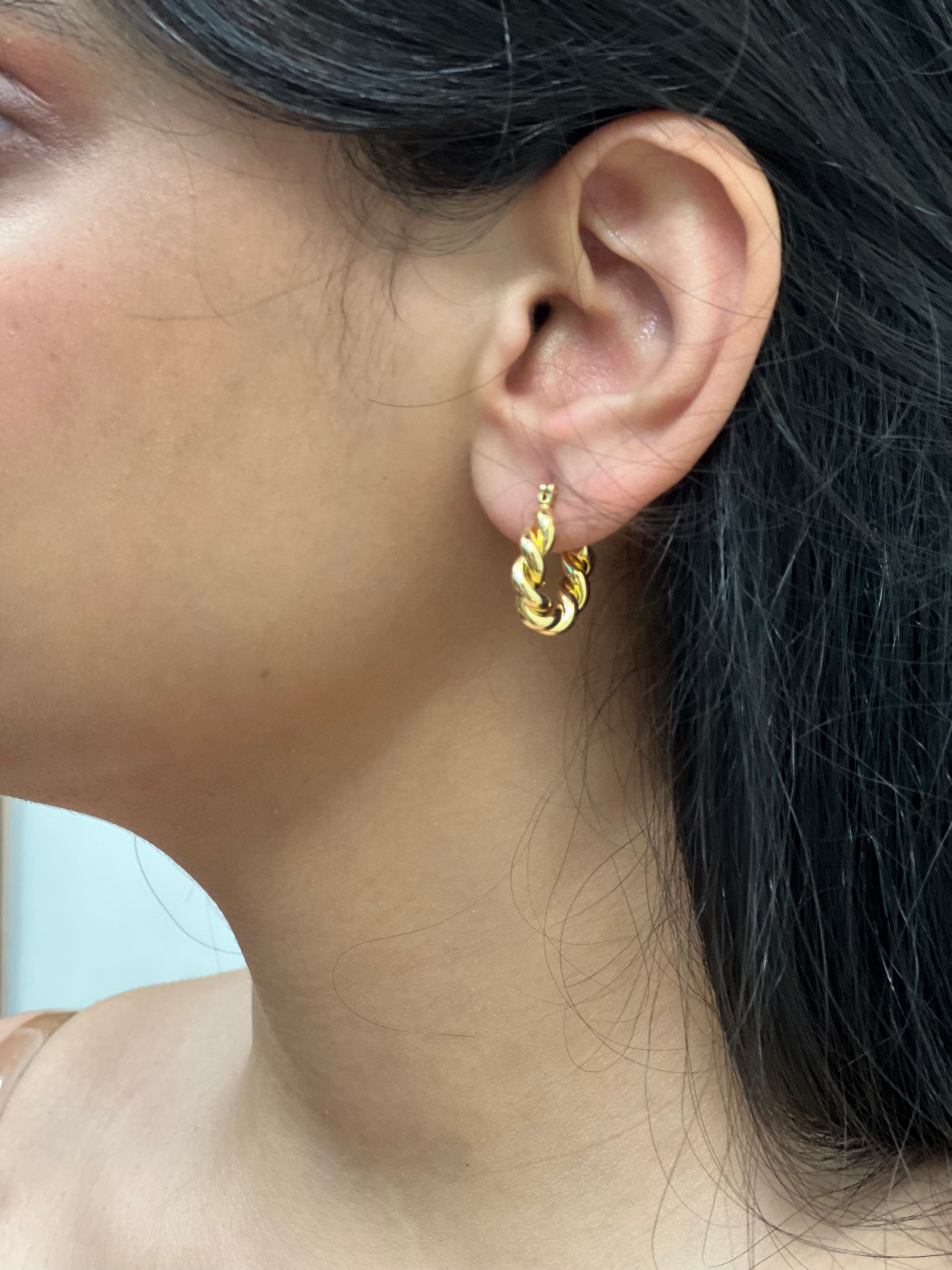 Discover the perfect combination of elegance and modern style with our Twisted Glam Hoops. These stunning earrings feature a unique gold twist hoop design that will elevate any outfit. Made with high-quality materials, they are both durable and fashionable. Add a touch of glamour to your look with these must-have hoops.
