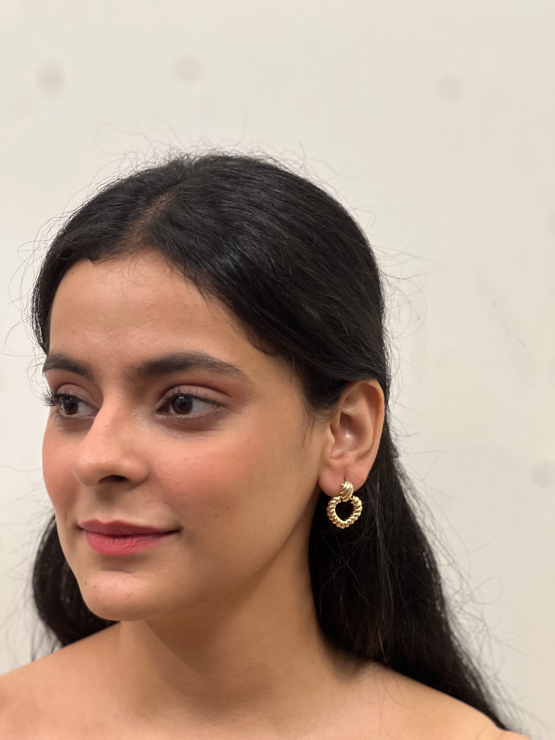 Add a touch of elegance to your look with our Studded Swirl Earrings. Made with gold, these studded drop earrings are perfect for the fashion-forward girl looking to make a statement. The intricate swirl design adds a unique touch that is sure to turn heads.
