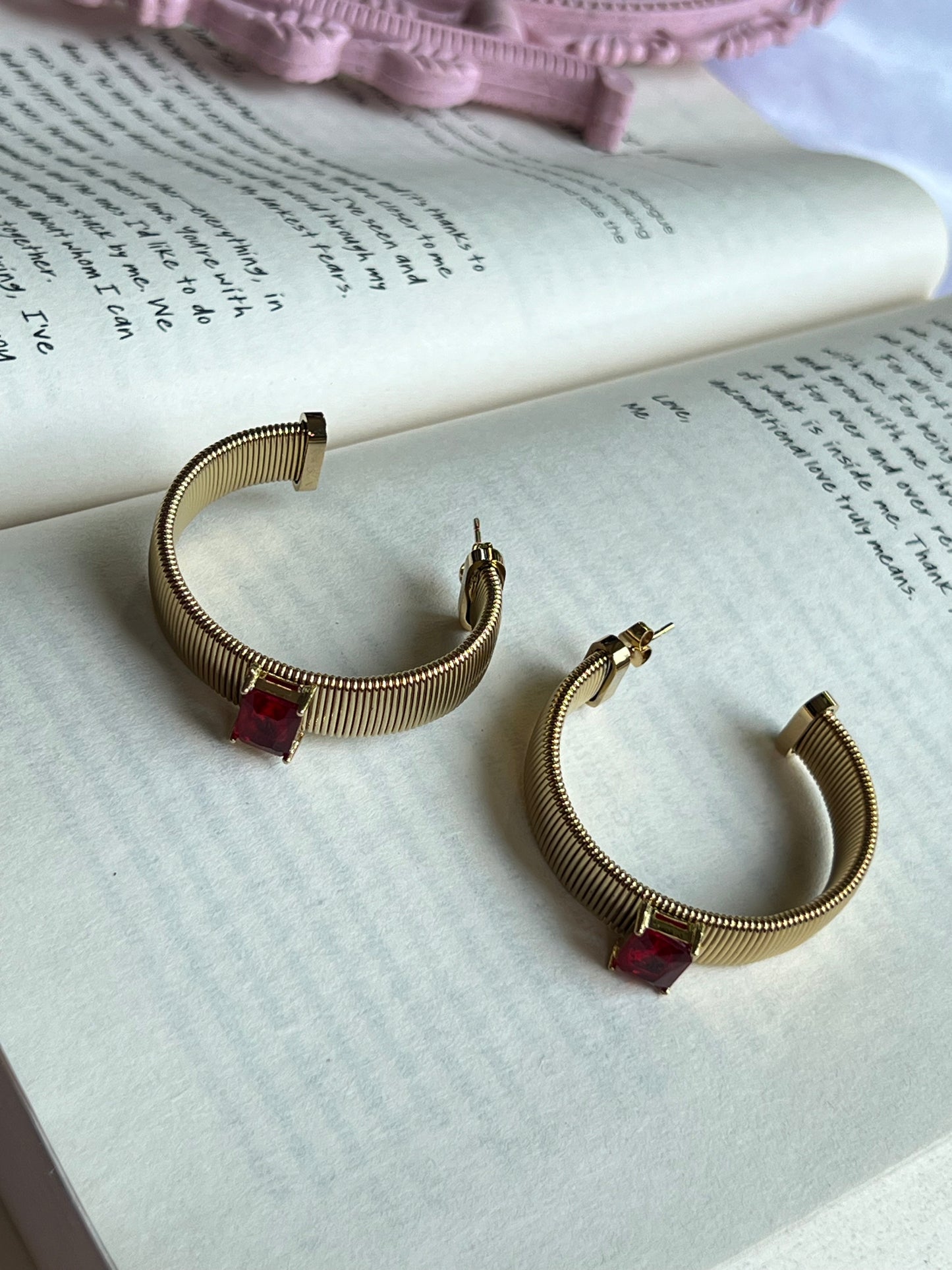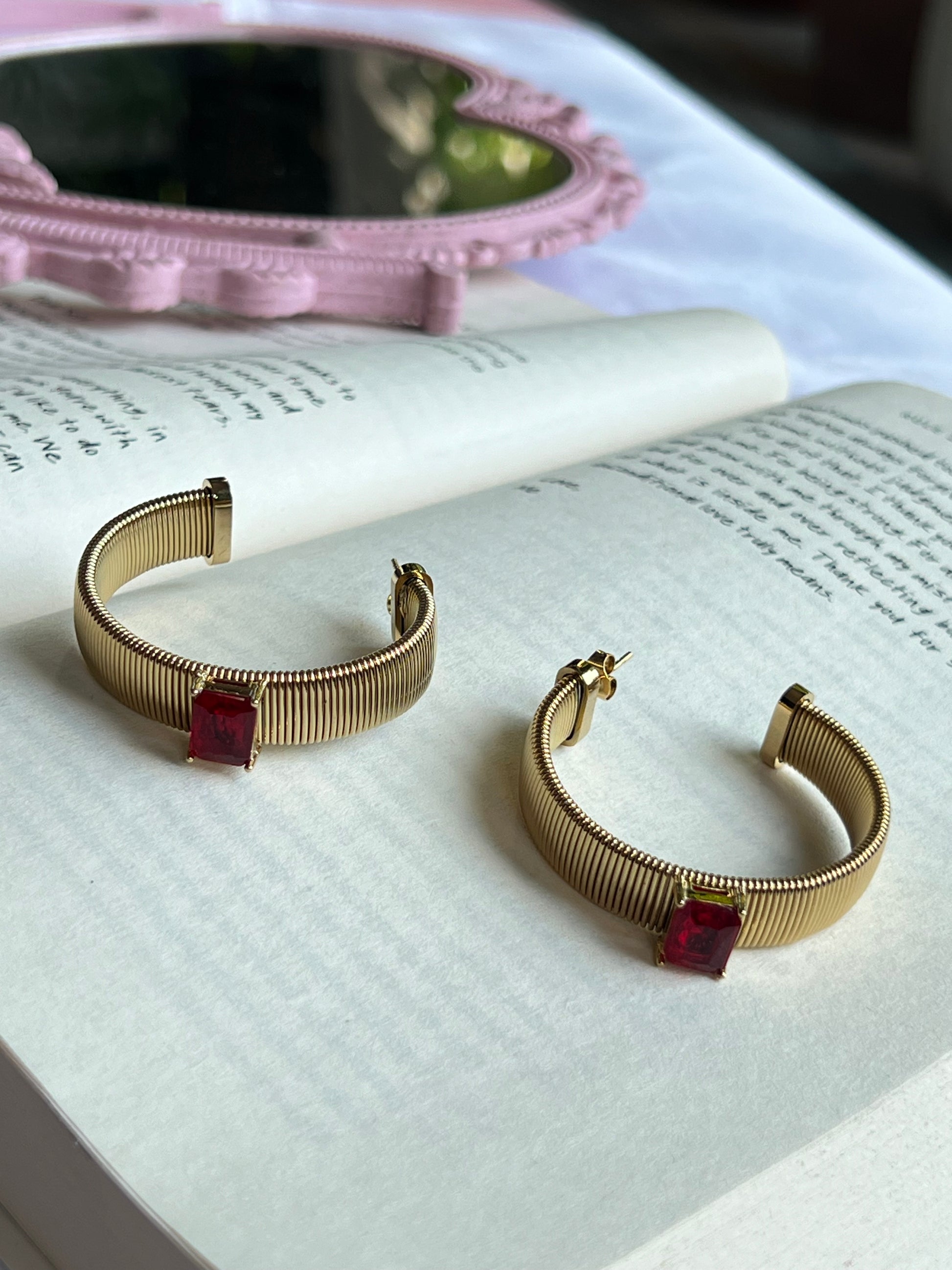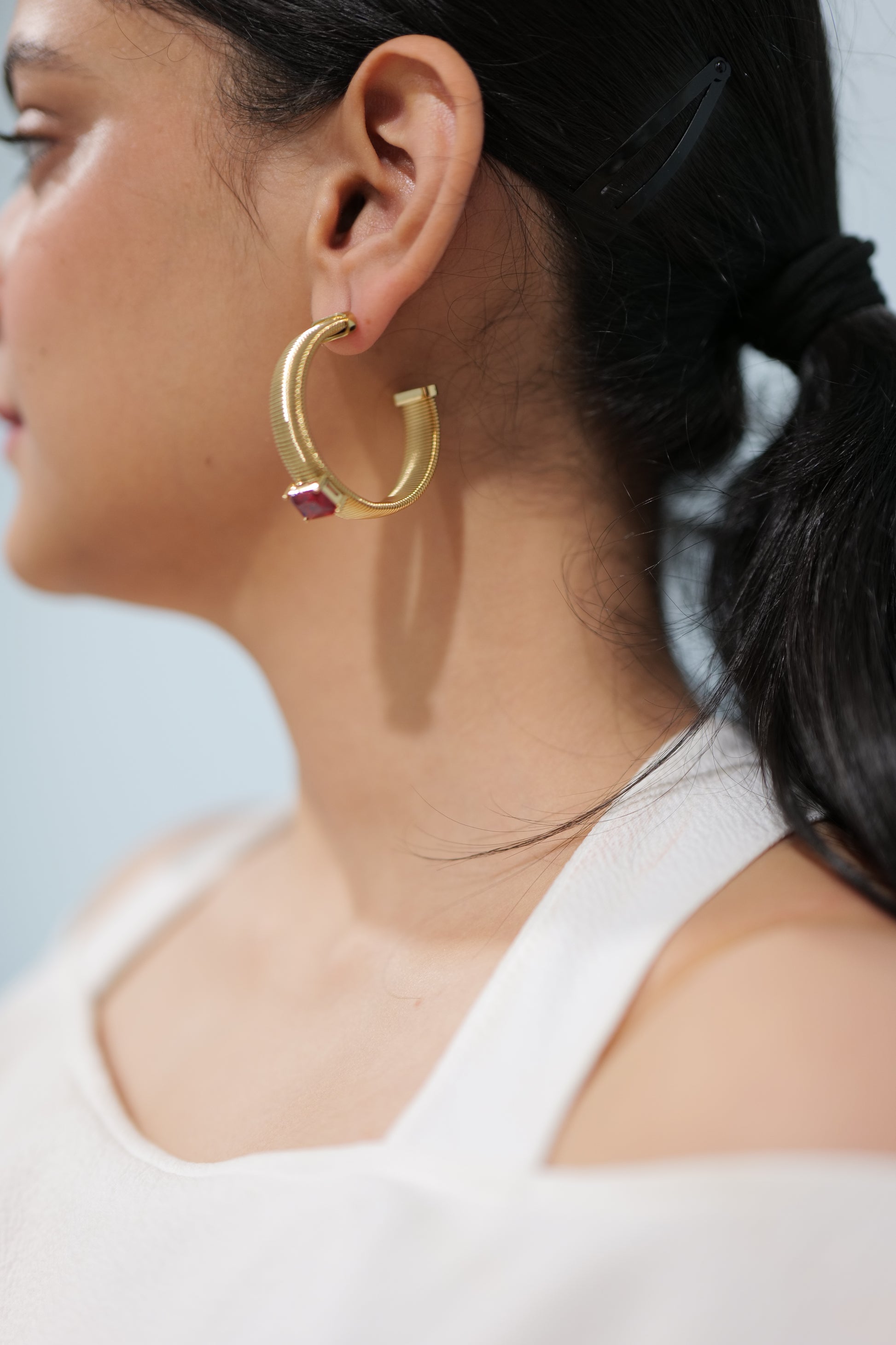 Expertly crafted with a beautiful red color, these Jasmine's Golden Sands Hoops are inspired by the iconic Disney princess, Jasmine. The perfect addition to any outfit, these hoops will add a touch of magic and elegance to your look. Experience the wonder of Agrabah with these stunning hoops.