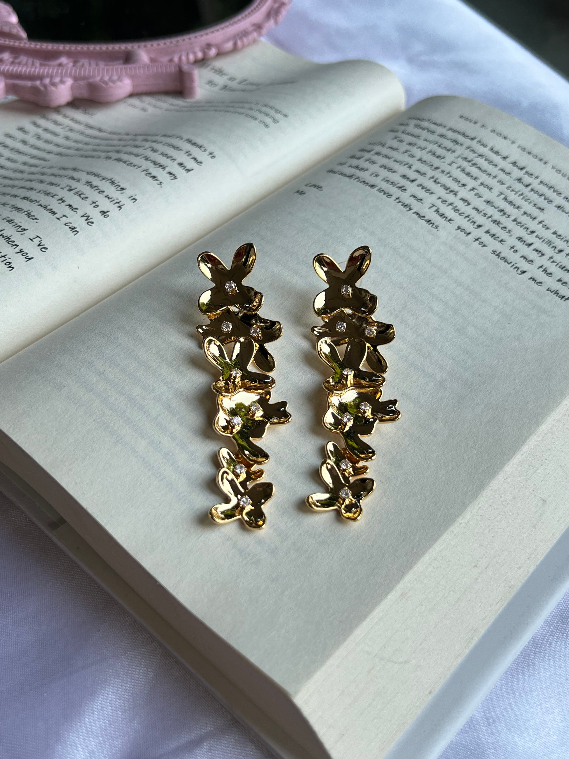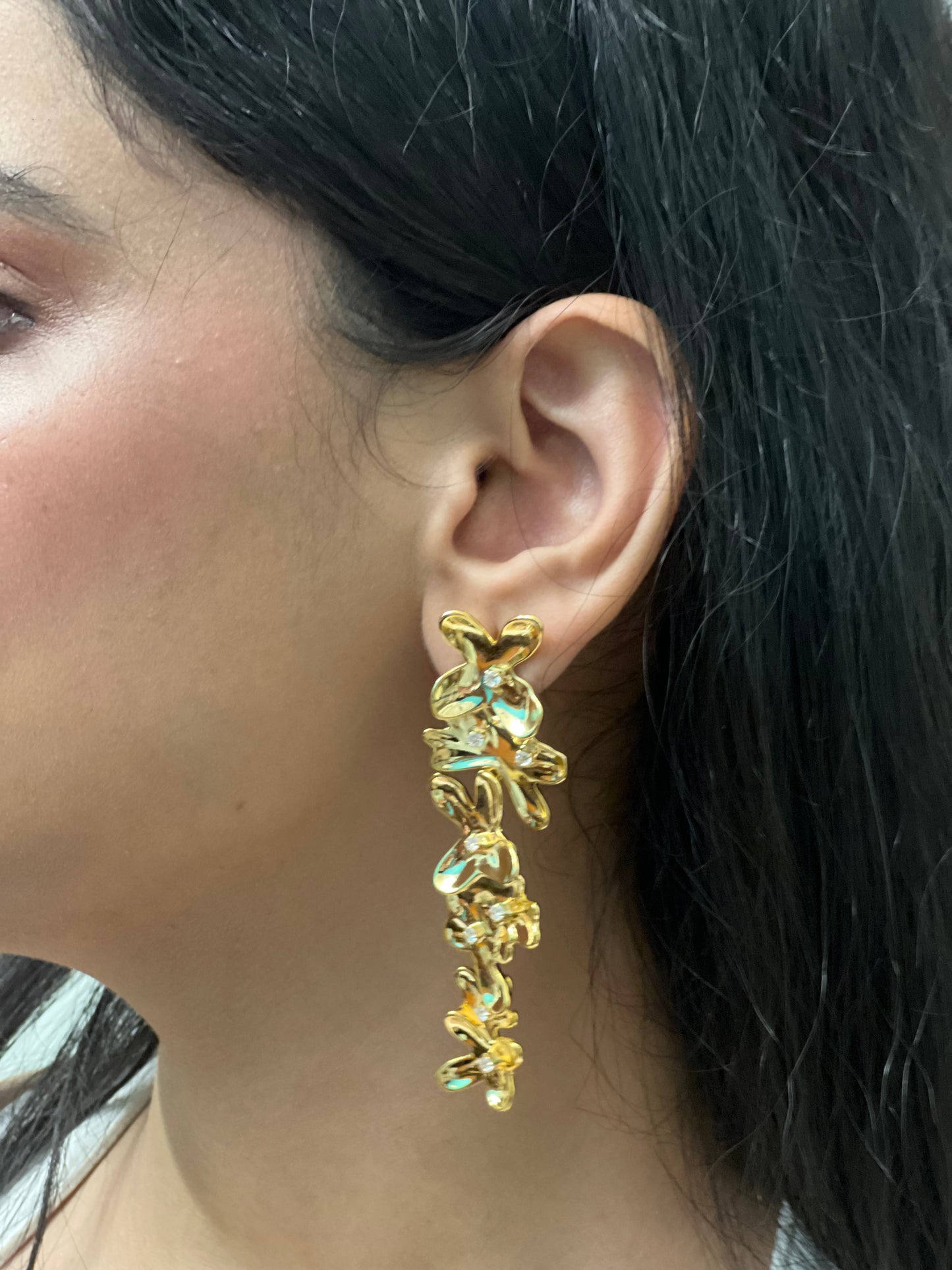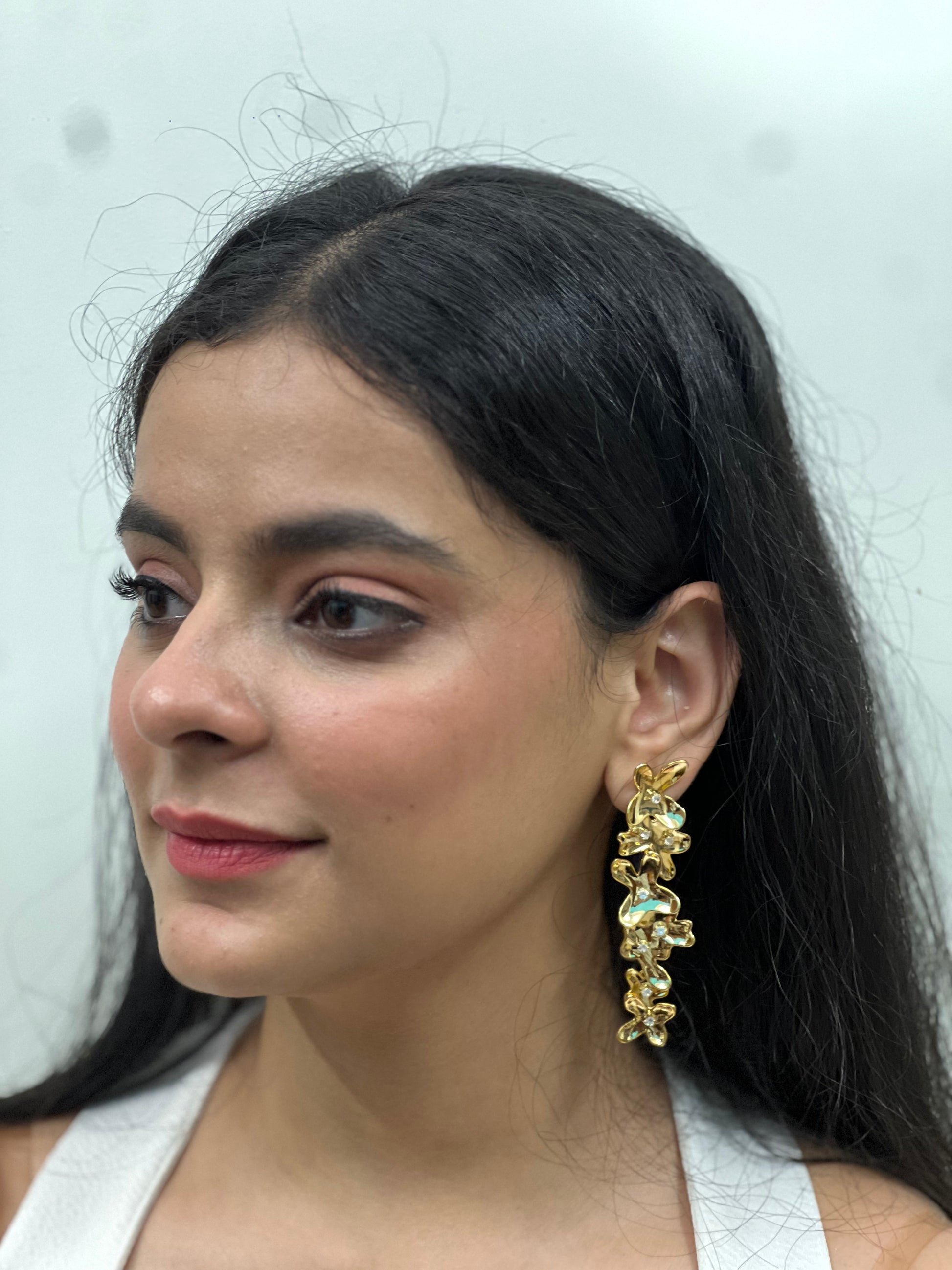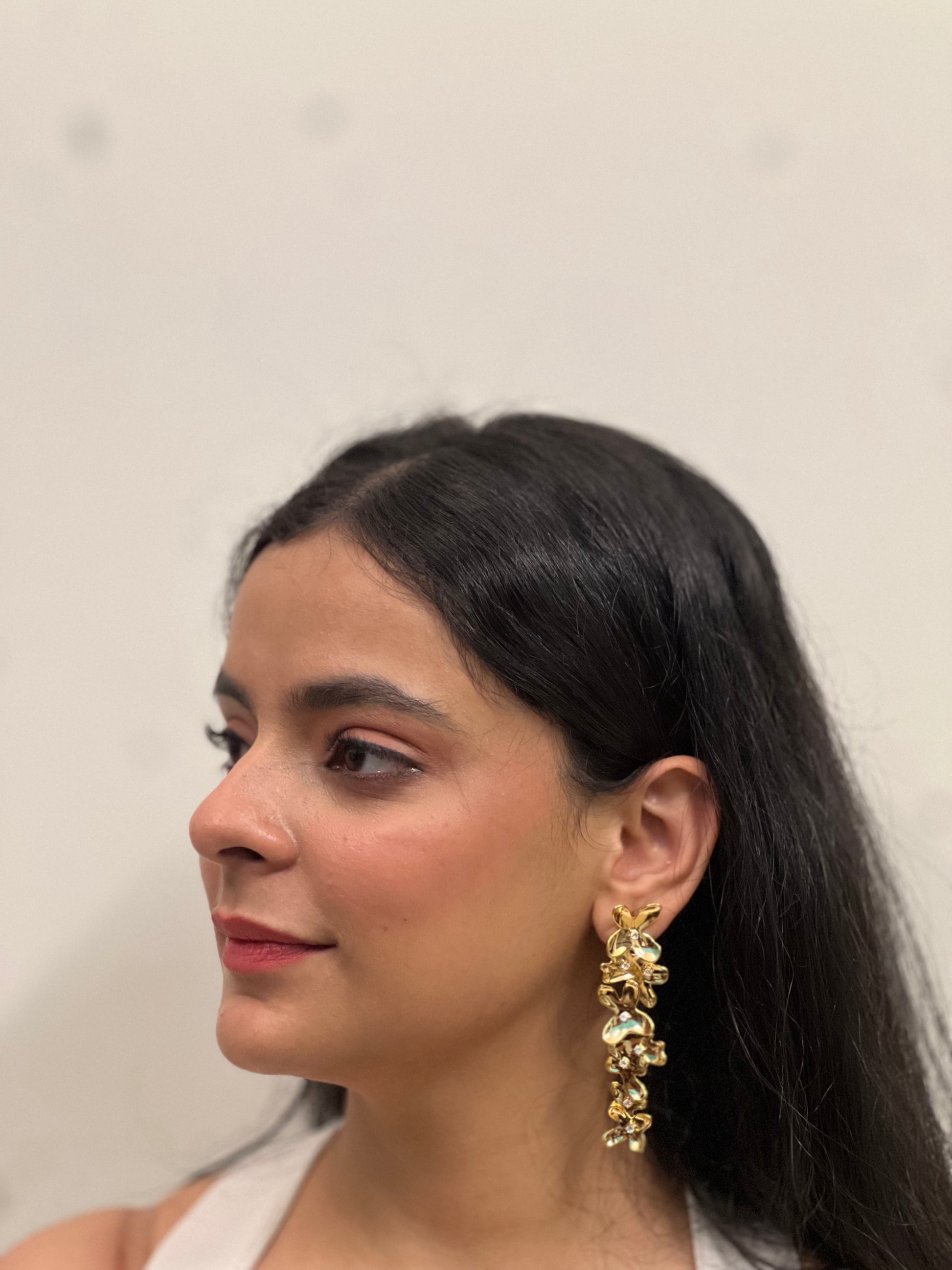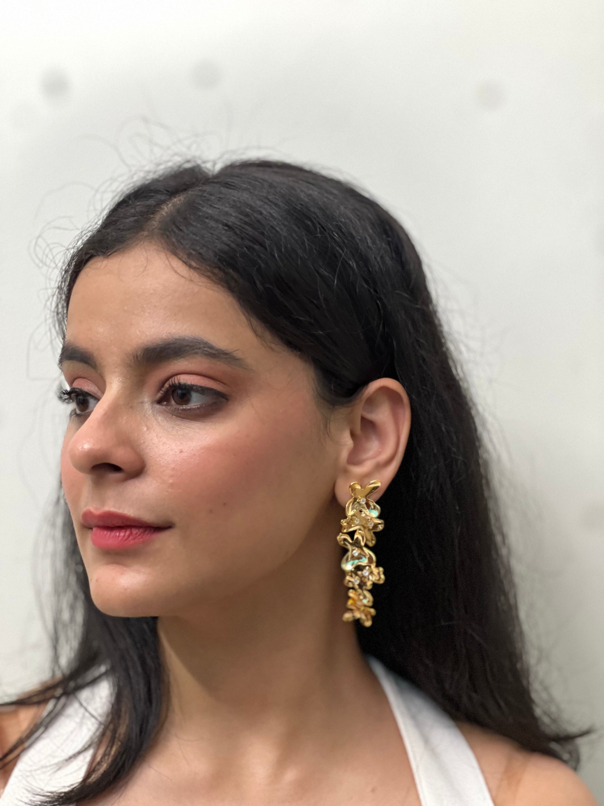Elevate your style with our Enchanted gold petal earrings. These floral nature charm earrings add a touch of elegance to any outfit. Featuring long design and delicate flower details, these earrings are the perfect accessory for any occasion. Embrace your natural beauty with these enchanting earrings.