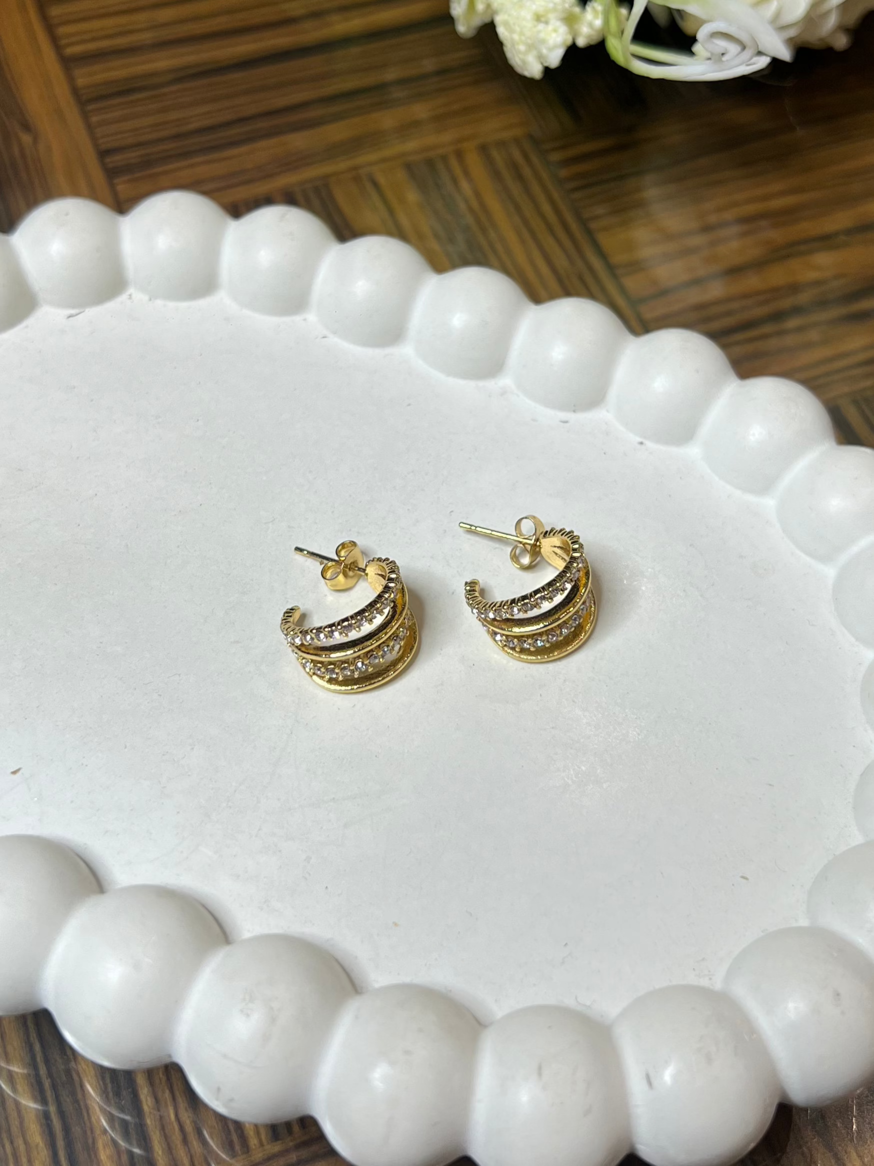 Introducing the Celeste Charm Hoops , perfect everyday accessory for any professional. Constructed with four layers for durability and style, adorned with gold plating for a touch of elegance. Upgrade your workwear game with this versatile piece that can be worn everywhere.