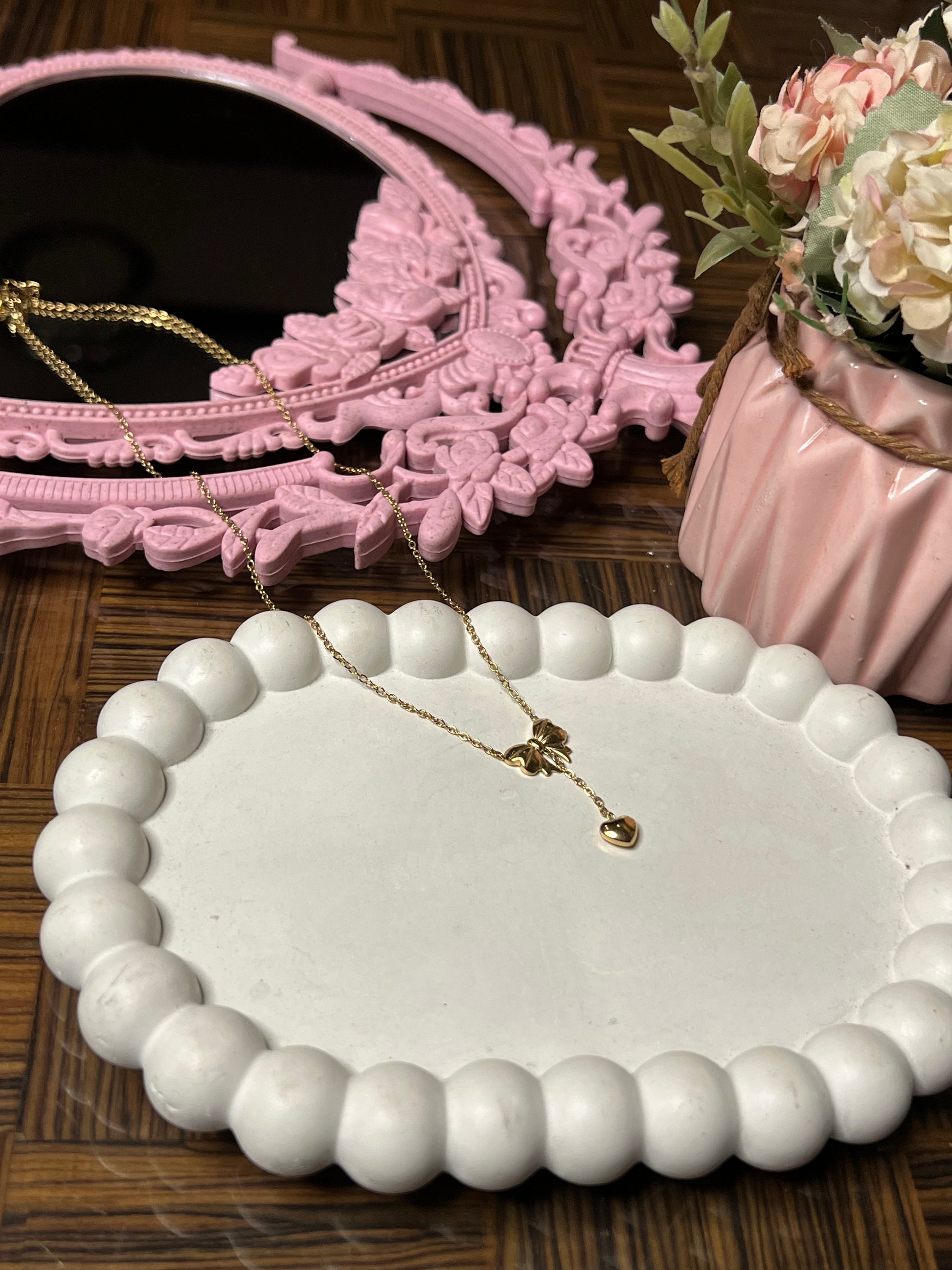 The Knot My Heart Necklace showcases a sophisticated knot design that embodies connection and affection. Meticulously crafted, this elegant piece enhances any outfit with a touch of meaningful style, making it a versatile accessory for both everyday wear and special occasions.