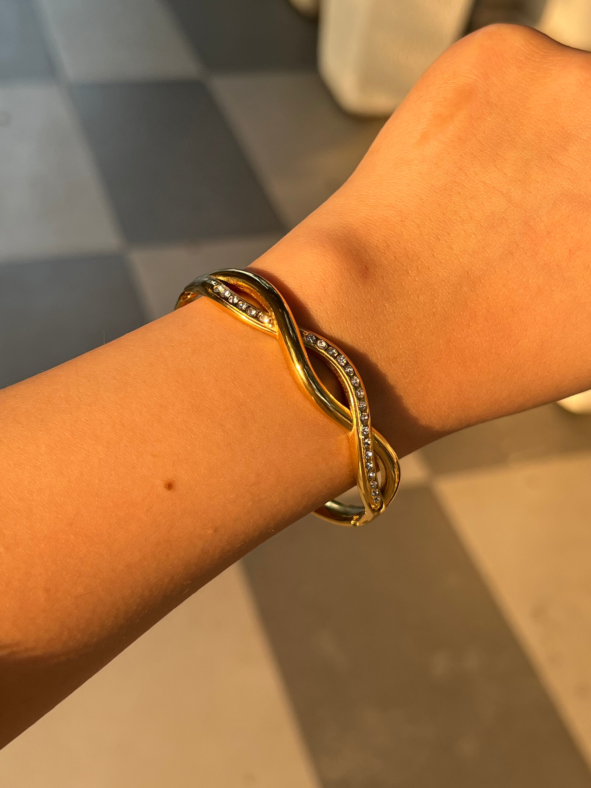 Introducing the Infinity Loop Bracelet, a timeless addition to our Bracelet Bliss luxury collection. This trendy bracelet features an anti-tarnish gold plating and is waterproof, making it the perfect piece to wear every day. With its beautiful infinity loop design, it is both fashionable and practical.