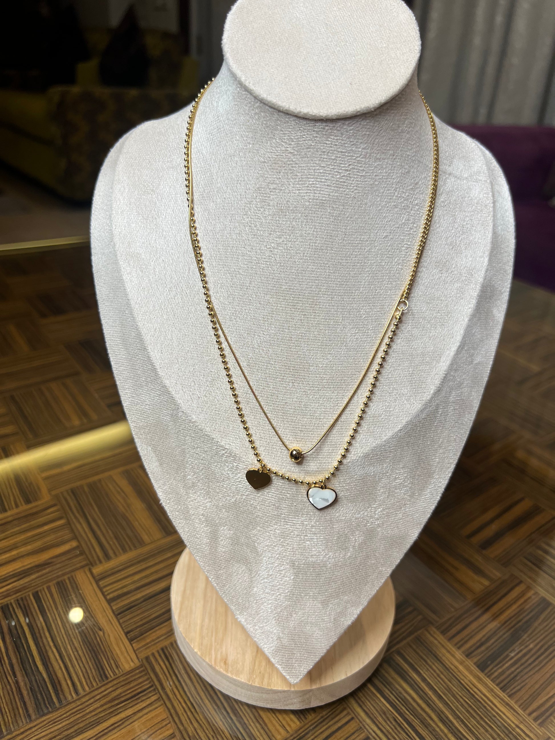Expertly crafted with two layers of gold and white hearts, the Layered in Love Necklace is destined to impress. The elegant design adds a touch of romance to any outfit and is perfect for expressing love. Its unique layered construction creates a stunning visual and is sure to make a statement.