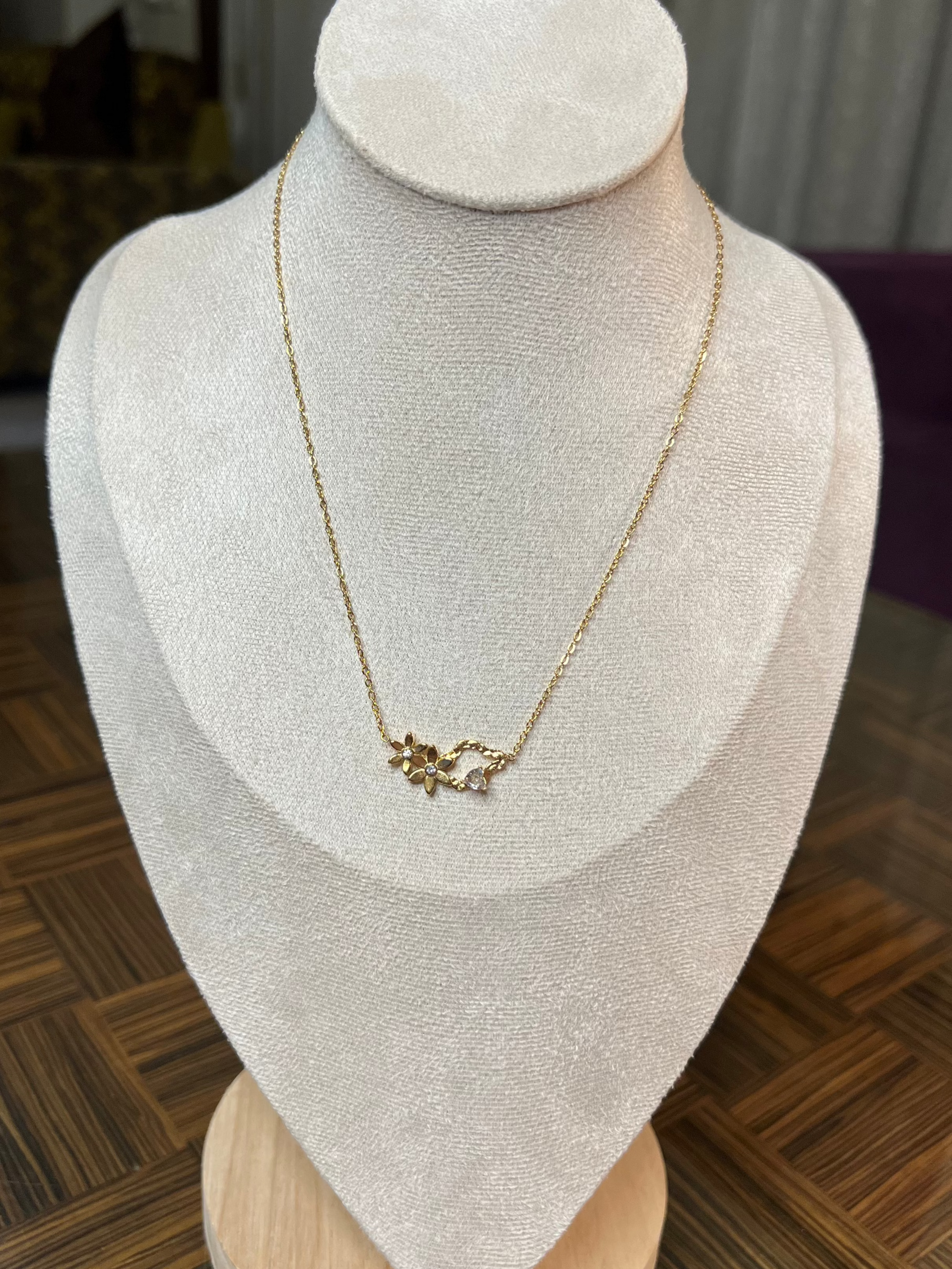 The Floral Muse Necklace combines delicate floral motifs with subtle stud accents, creating a harmonious blend of nature-inspired beauty and modern edge. Designed for those who appreciate refined craftsmanship, this necklace adds a distinctive and elegant touch to any outfit, effortlessly enhancing your everyday style with sophistication.