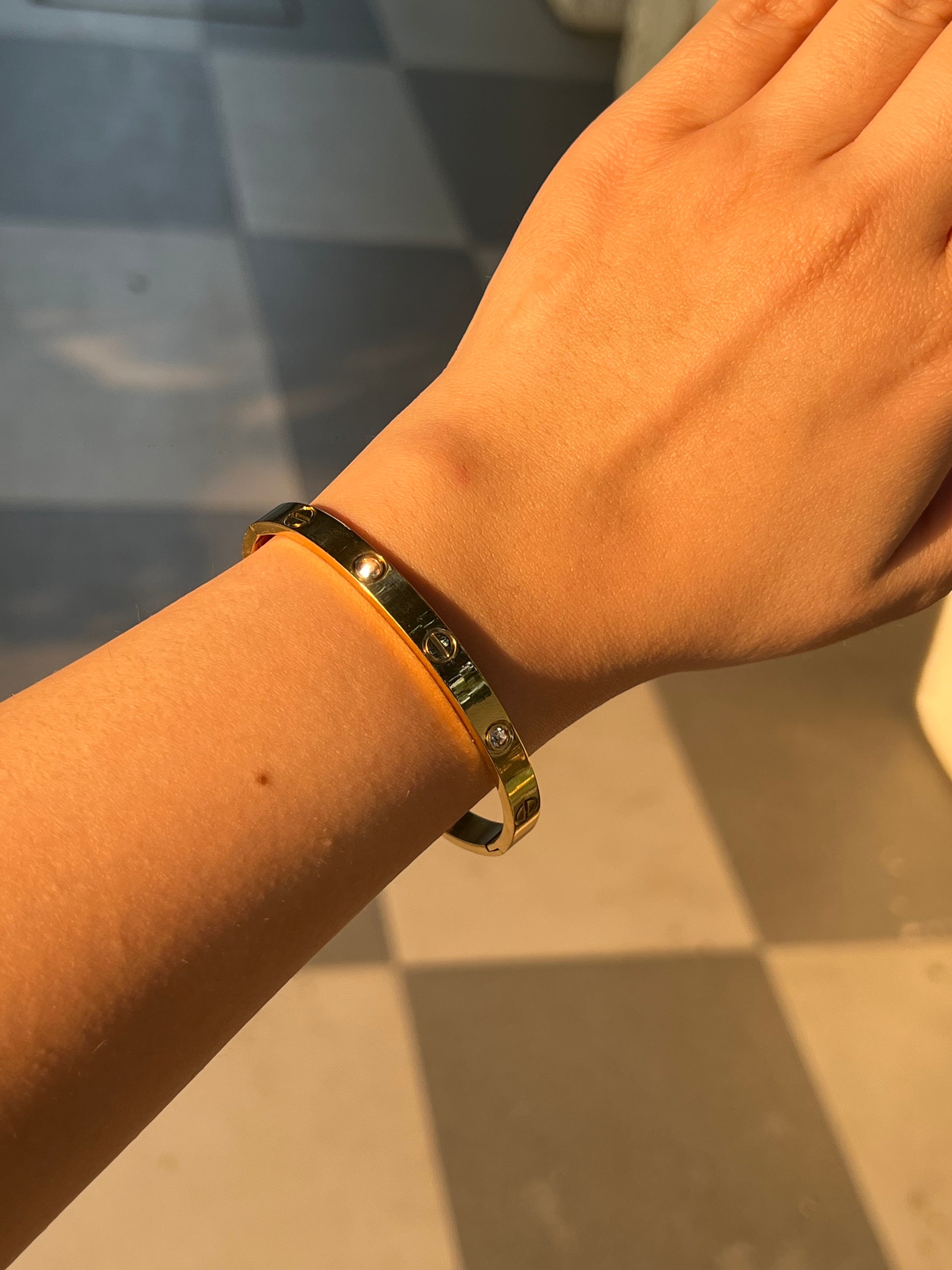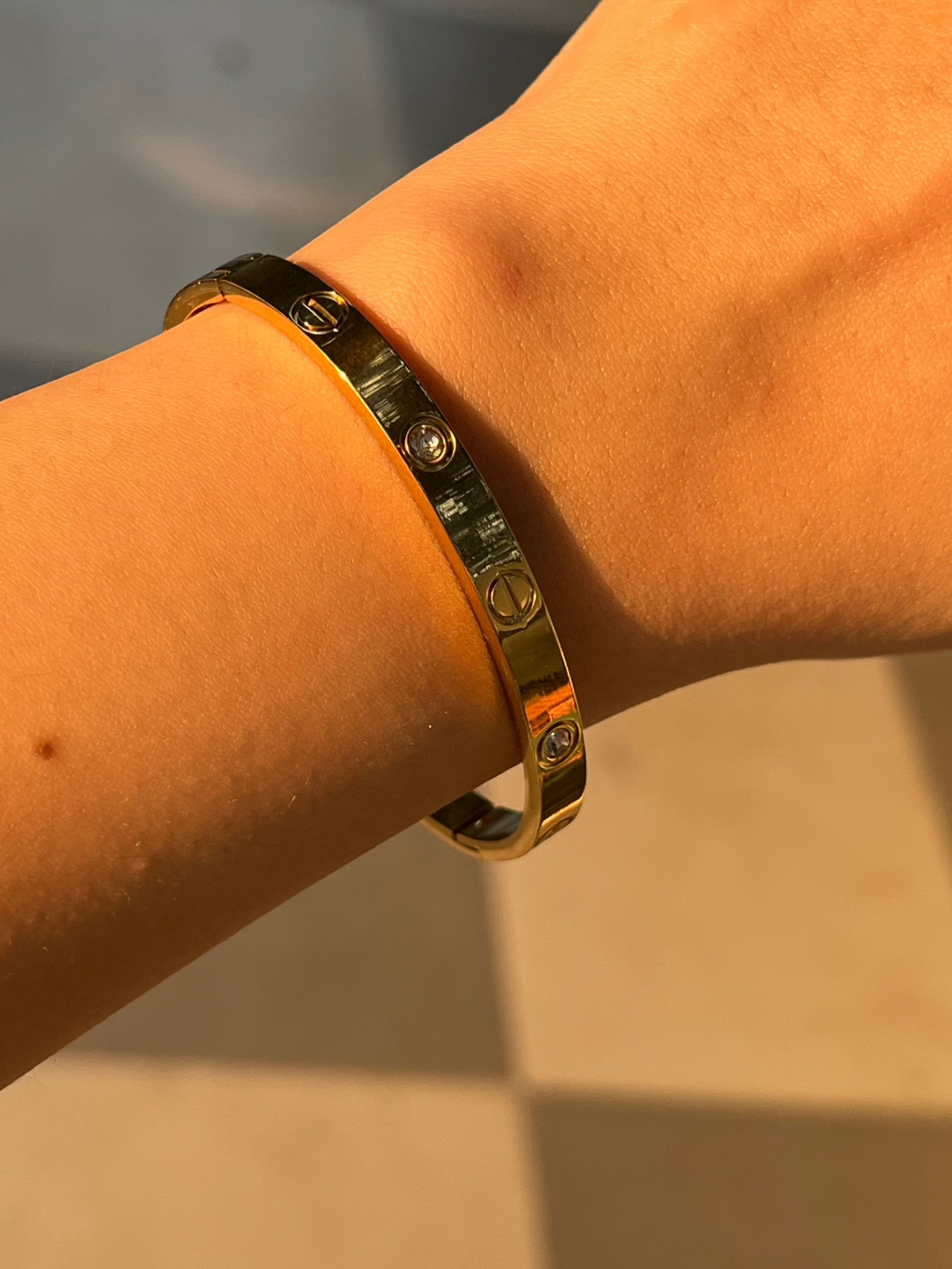 Introducing the Radiant Charm Bracelet, a timeless piece from our exclusive Bracelet Bliss Luxury Bracelet Collection. This trendsetting bracelet features anti-tarnish gold plating and is designed to withstand water, making it the perfect accessory for any occasion. Elevate your style with this iconic design from Cartier.