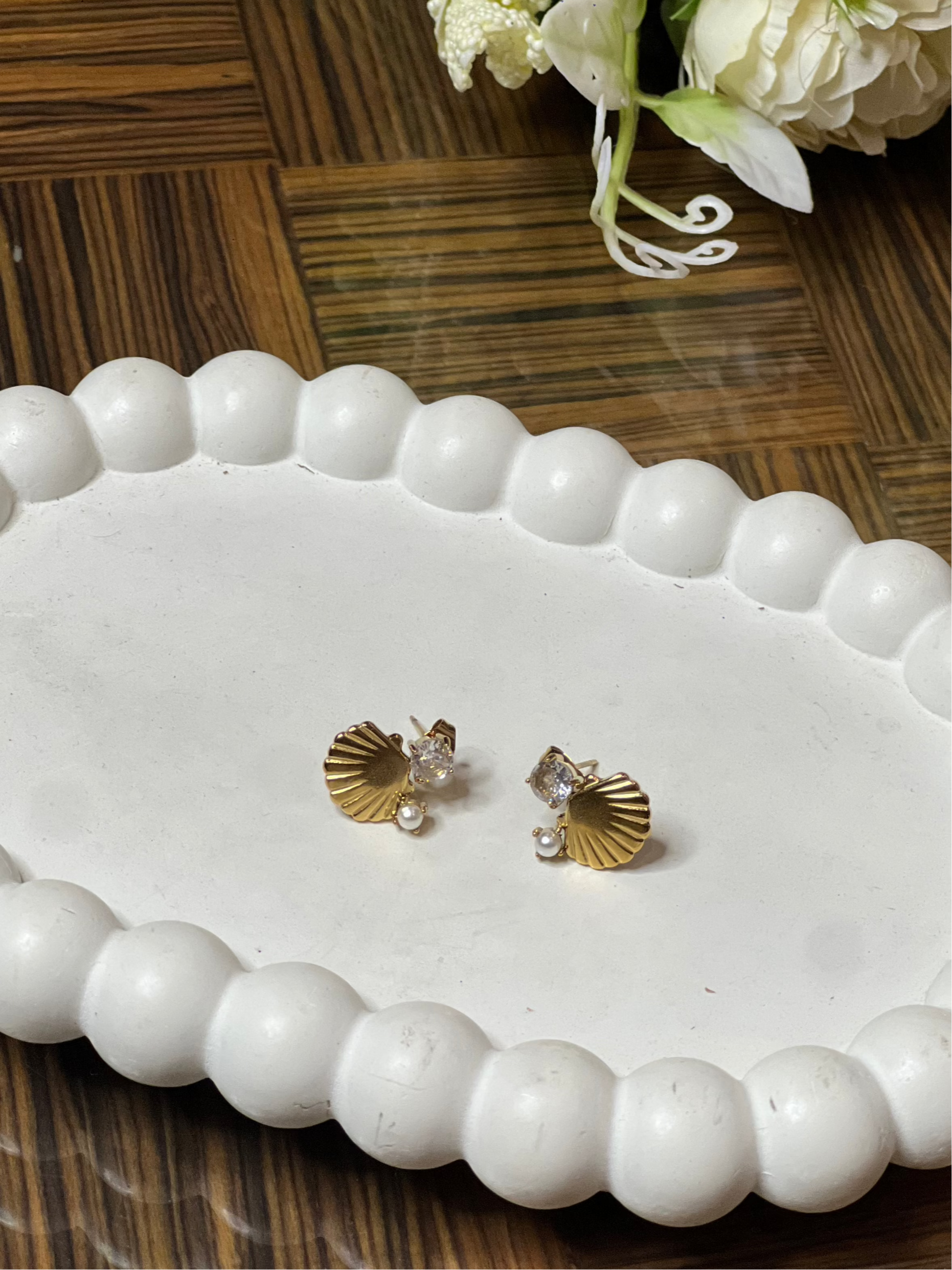 Discover a timeless elegance with our Shell Loop Earrings. These beautifully crafted earrings feature delicate shell studs and a golden finish, adding a touch of sophistication to any outfit. Elevate your style with these versatile earrings that effortlessly complement any look.