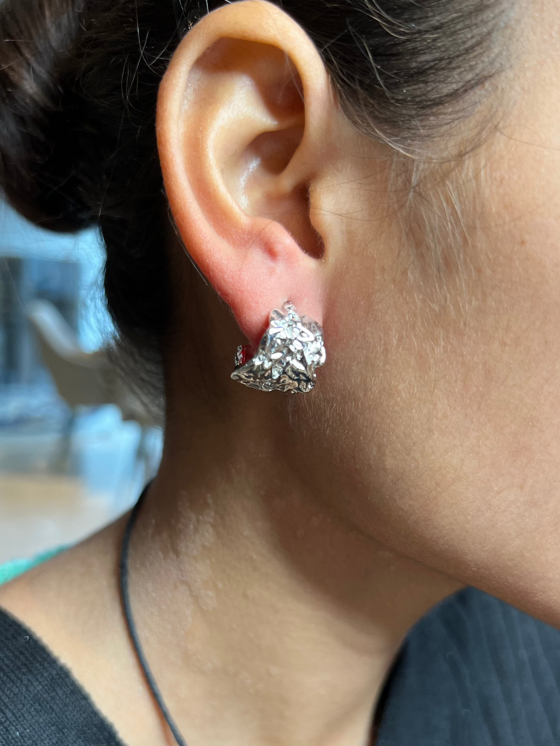 These Silver Love Loops are the perfect addition to any outfit. Their minimal design makes them suitable for everyday wear or to add a touch of elegance to work wear. Made of high-quality silver, these hoops are both stylish and durable, making them a must-have for any fashion-forward individual.