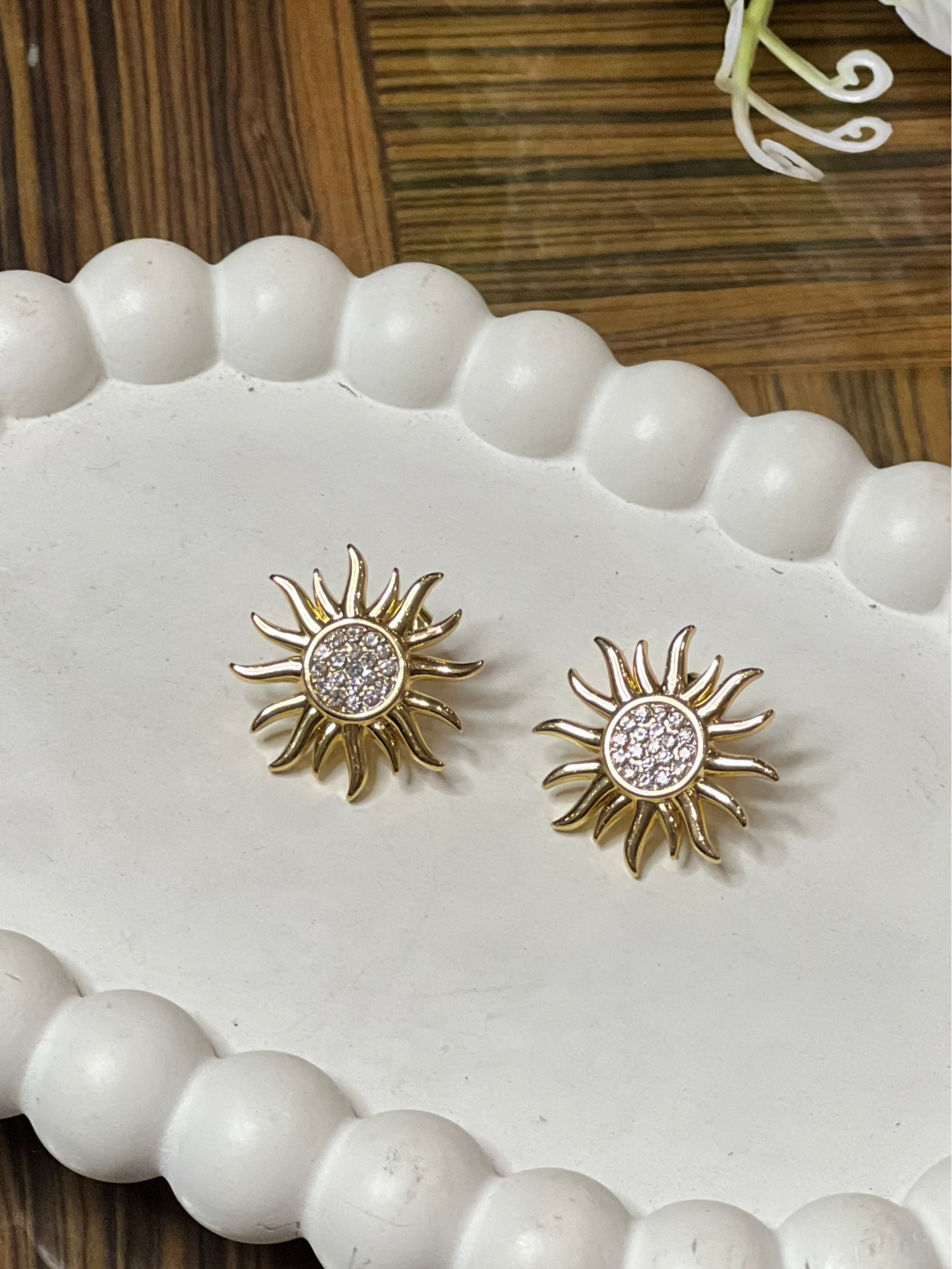 Enhance your look with our Sunbeam Drop Earrings. Crafted to add a radiant glow to your face, these earrings bring a touch of brightness to any outfit. With their sun-inspired design, these earrings are the perfect accessory for any style.
