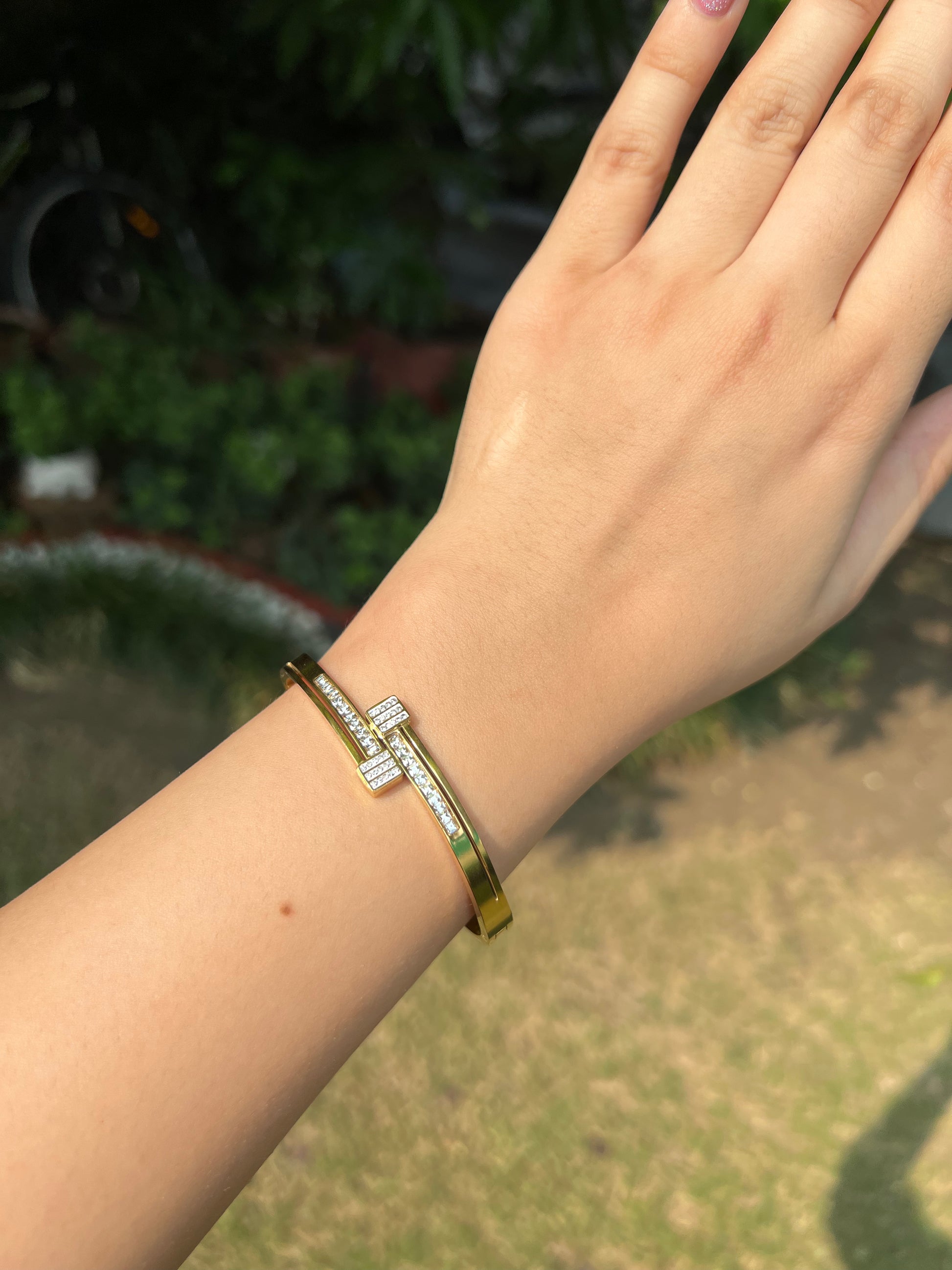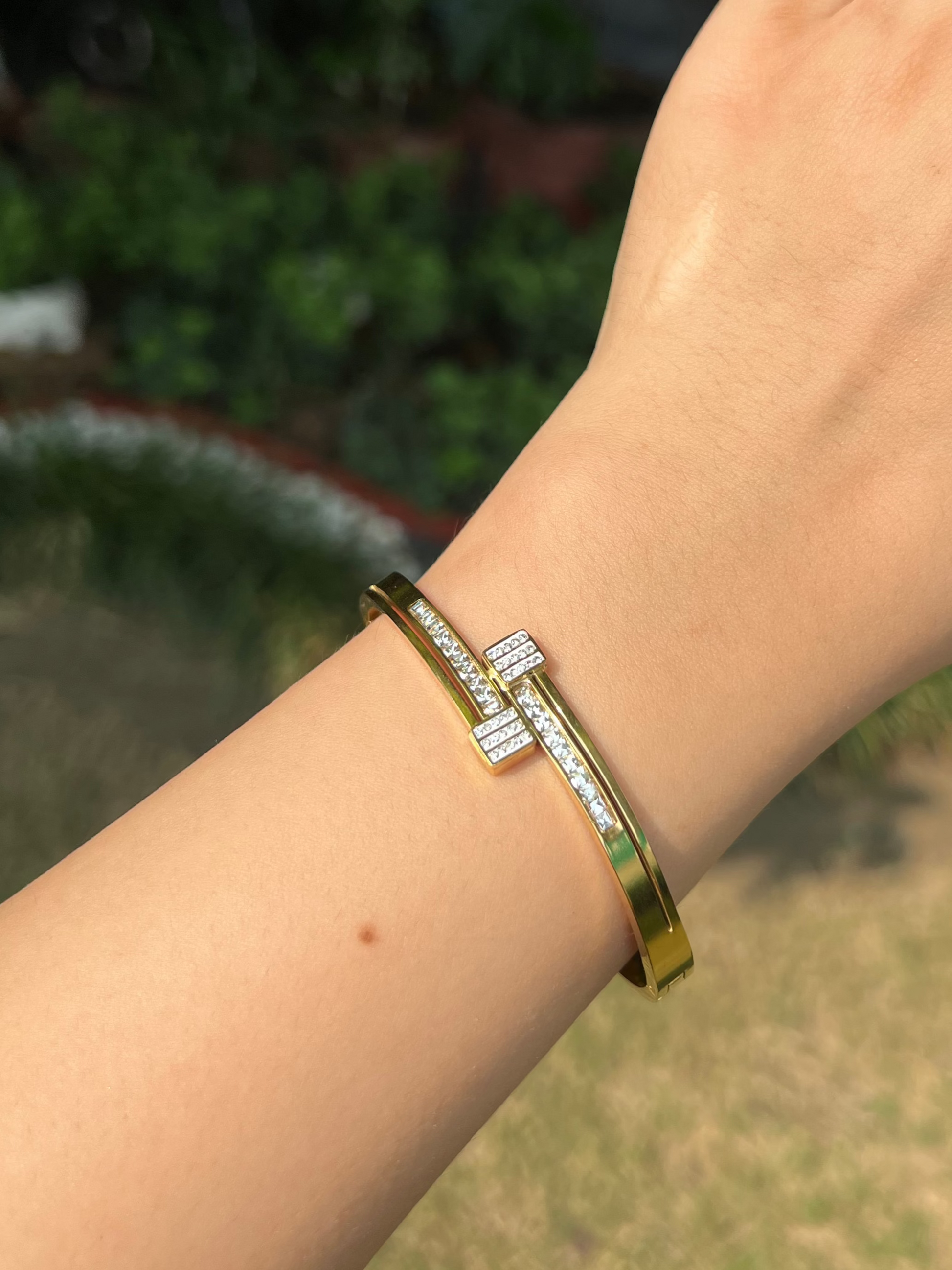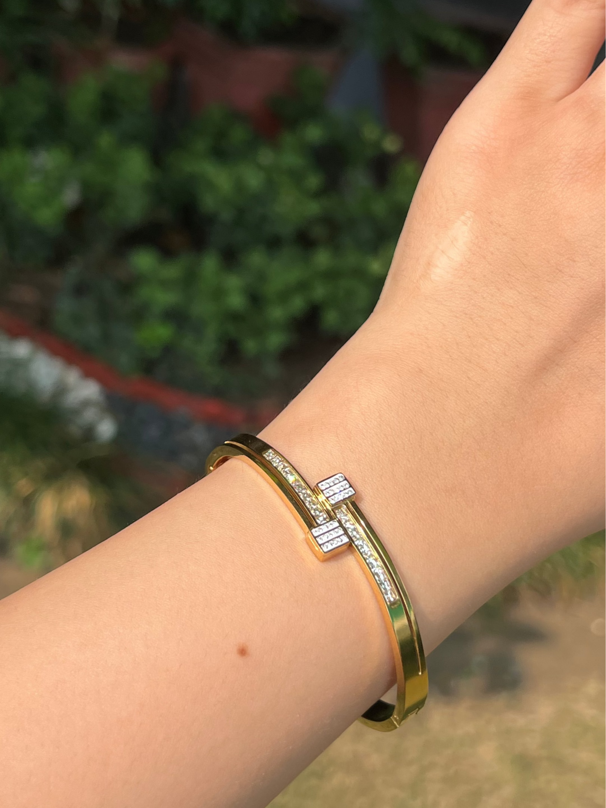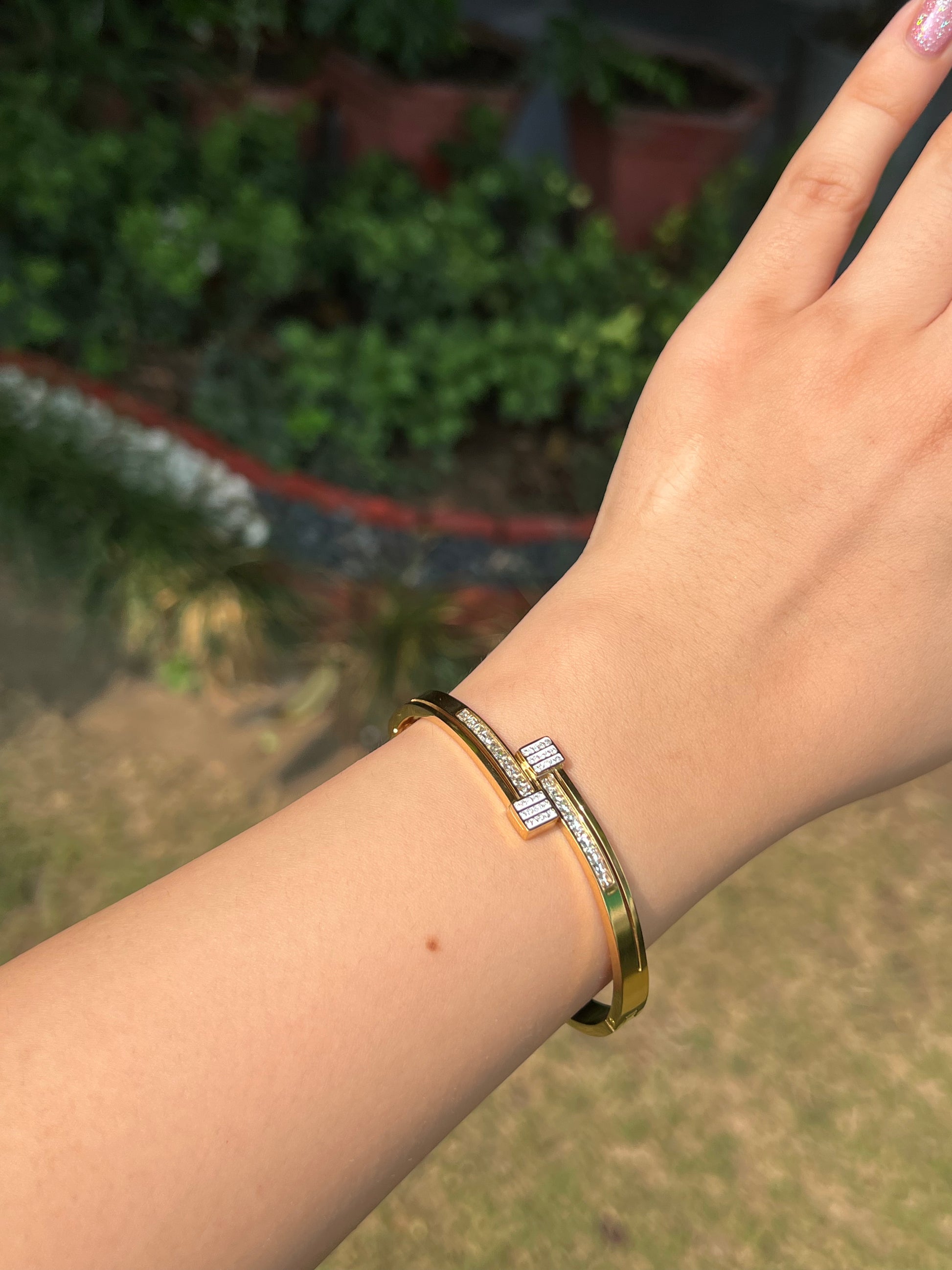 The Elan Band is a finely crafted golden bracelet that combines elegance with a touch of royal charm. Its delicate design enhances any outfit, making it a versatile accessory for both everyday wear and special occasions. This band offers a subtle yet sophisticated statement, perfect for those who appreciate refined and timeless jewelry.