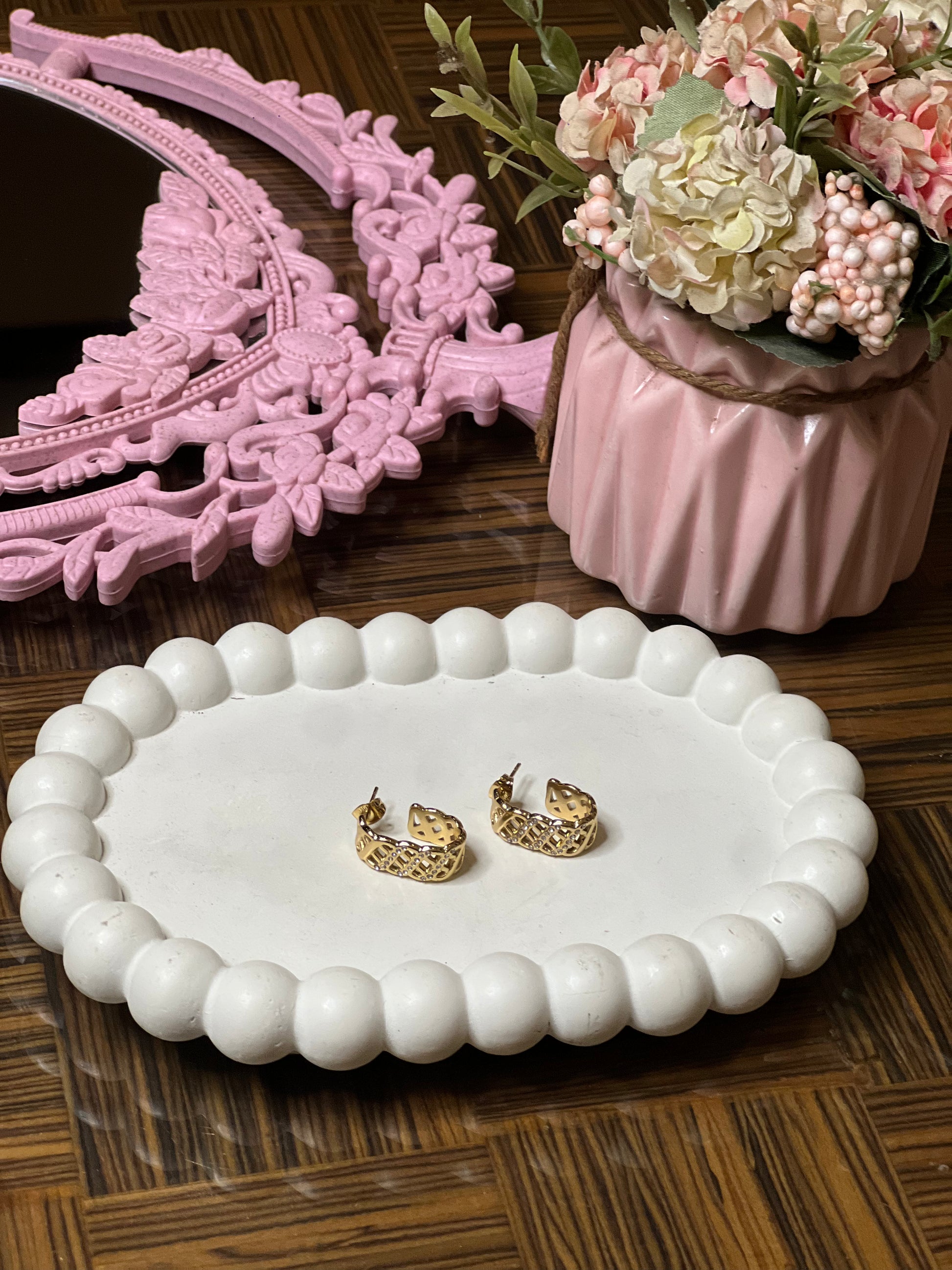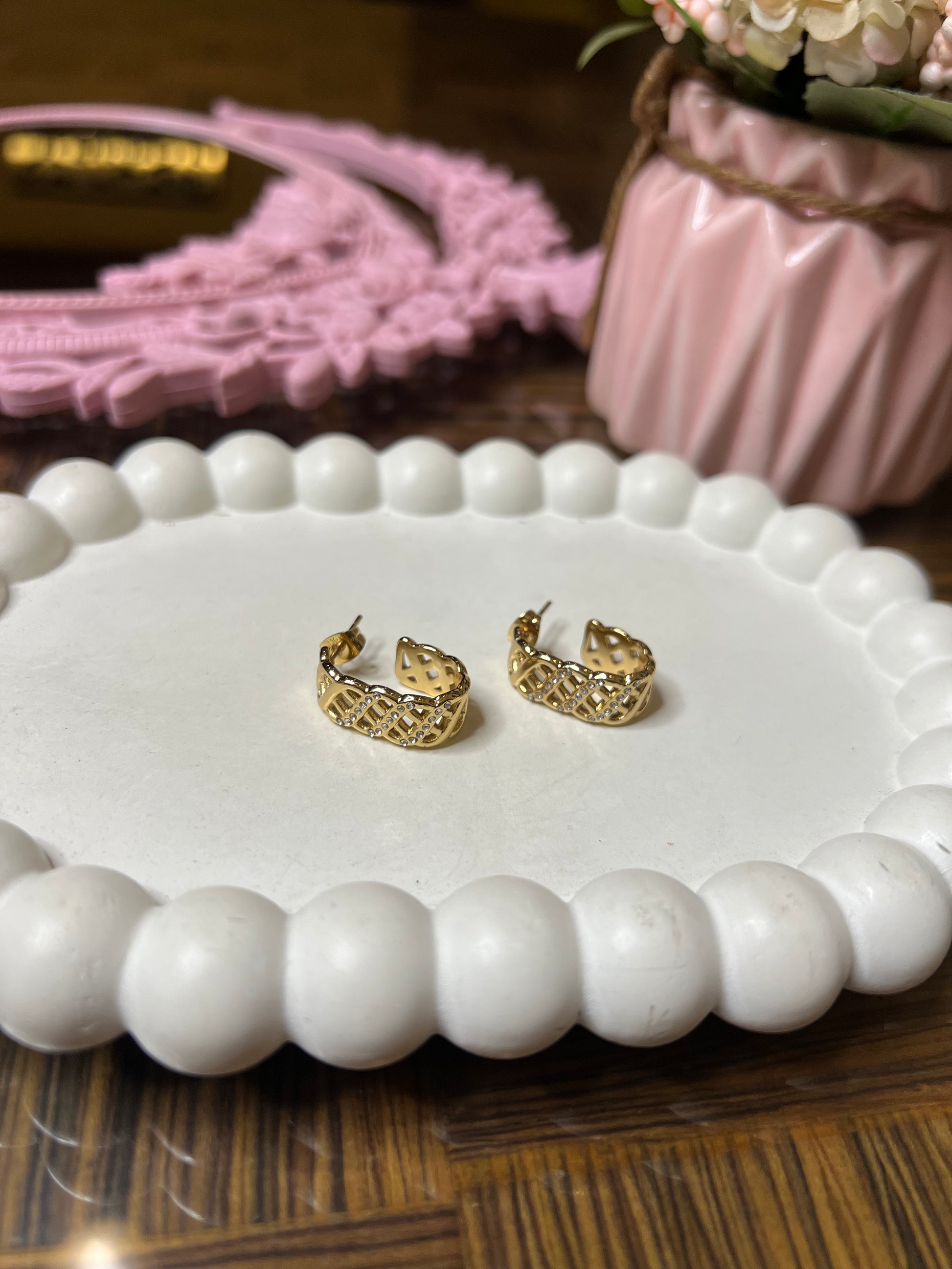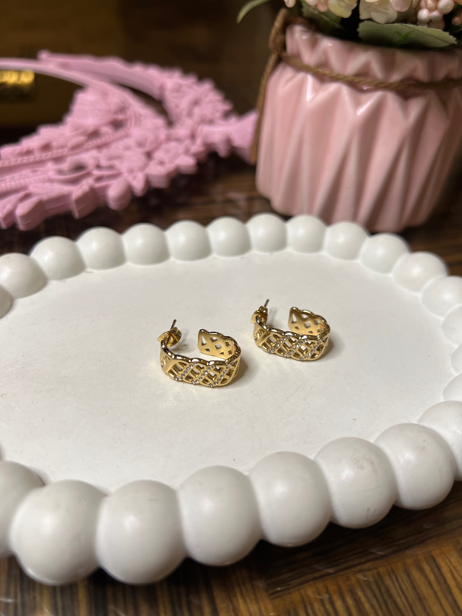 Add a touch of edge to your workwear with our Whirl Crisscross Hoops. These stunning studded hoops feature a unique crisscross design, perfect for adding a touch of sexiness to any outfit. Made for the confident and stylish, these hoops are a must-have for any fashion-forward individual.